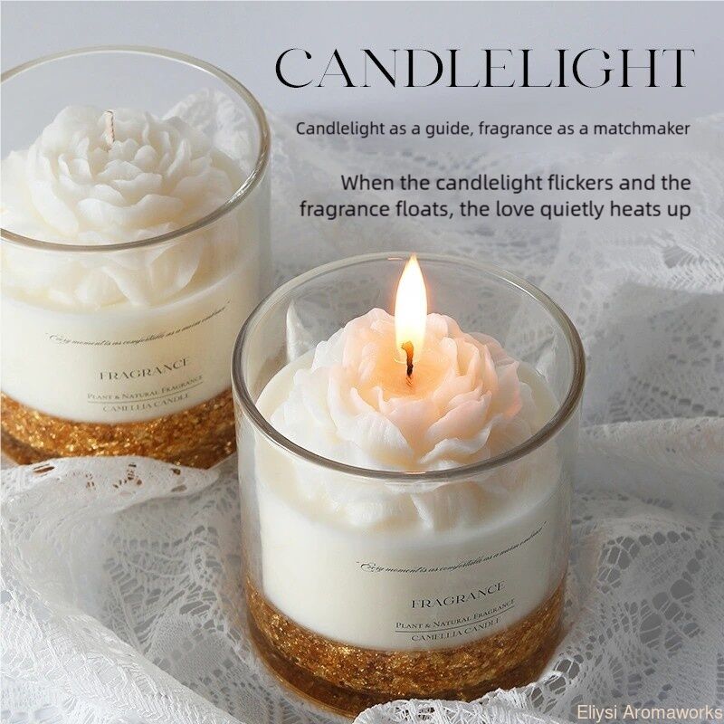 Gilded Camellia Scented Candle Hand-Poured with Natural Soy Wax and Gilded Flakes for Elegant Home Decor